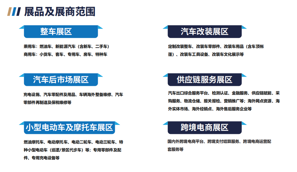 本届展会持续深化全产业链覆盖能力,精准聚合新能源及燃油整车、改装车、动力电池与材料、充换电技术及配套设施、智能网联应用、汽车配件、出口供应链服务等全链条优质资源;锚定广州琶洲核心会展区位,凭借大湾区“双循环”战略支点地位,打造集产品展示、国际交流、订单撮合于一体的全球汽车产业多边协作平台。